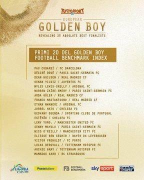 《都靈體育報》公佈2025年歐洲金童獎25人候選名單。常規候選名單20人,另有5人作爲“外卡”入圍,外卡機制於近年引入,旨在避免遺漏潛力新星,故此特別設置“補充名單”,貝林厄姆胞弟喬布因此入圍。