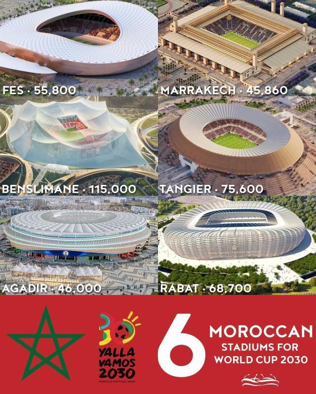 爲備戰2025年非洲杯和2030年世界盃,摩洛哥在體育基礎設施上投資了至少20億歐元。其中包括對拉巴特和丹吉爾體育場的翻新工程,以及計劃於2028年在卡薩布蘭卡附近的本斯利曼建造一座可容納11.5萬人的體育場,耗資約5億歐元,這將是全球最大體育場之一。摩洛哥還在賽事相關基礎設施上投入巨資:建設高速公路,擴展高鐵網絡,以及將全國機場容量翻倍。