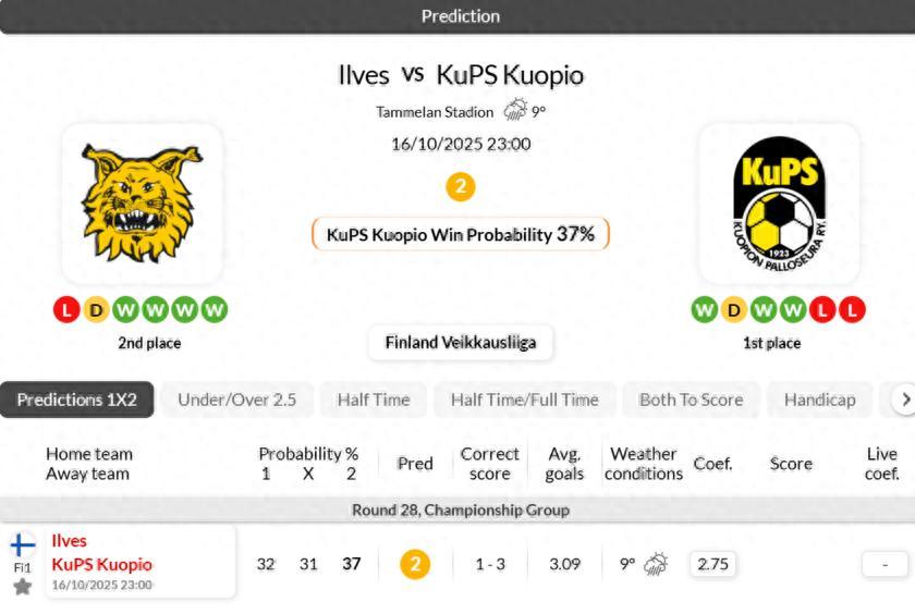 - KuPS Kuopio have been defeated in their last 4 matches against Ilves in Veikkausliiga.