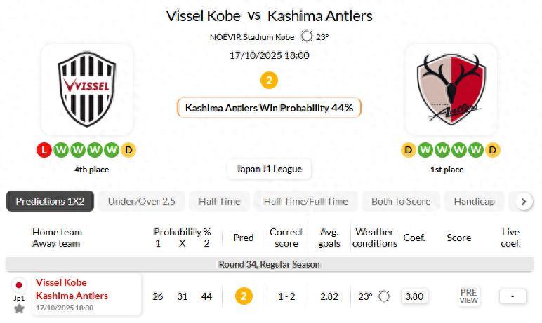 神戶勝利船近9個日職聯賽主場有8場保持不敗
