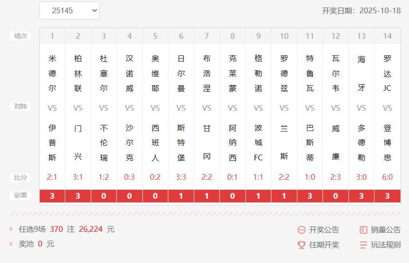 14場25145期開獎結果