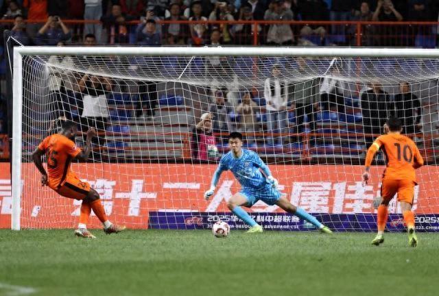 比賽第36分鐘,王獻鈞手球送點,奧斯卡點球破門,雲南玉昆1比0領先天津津門虎。