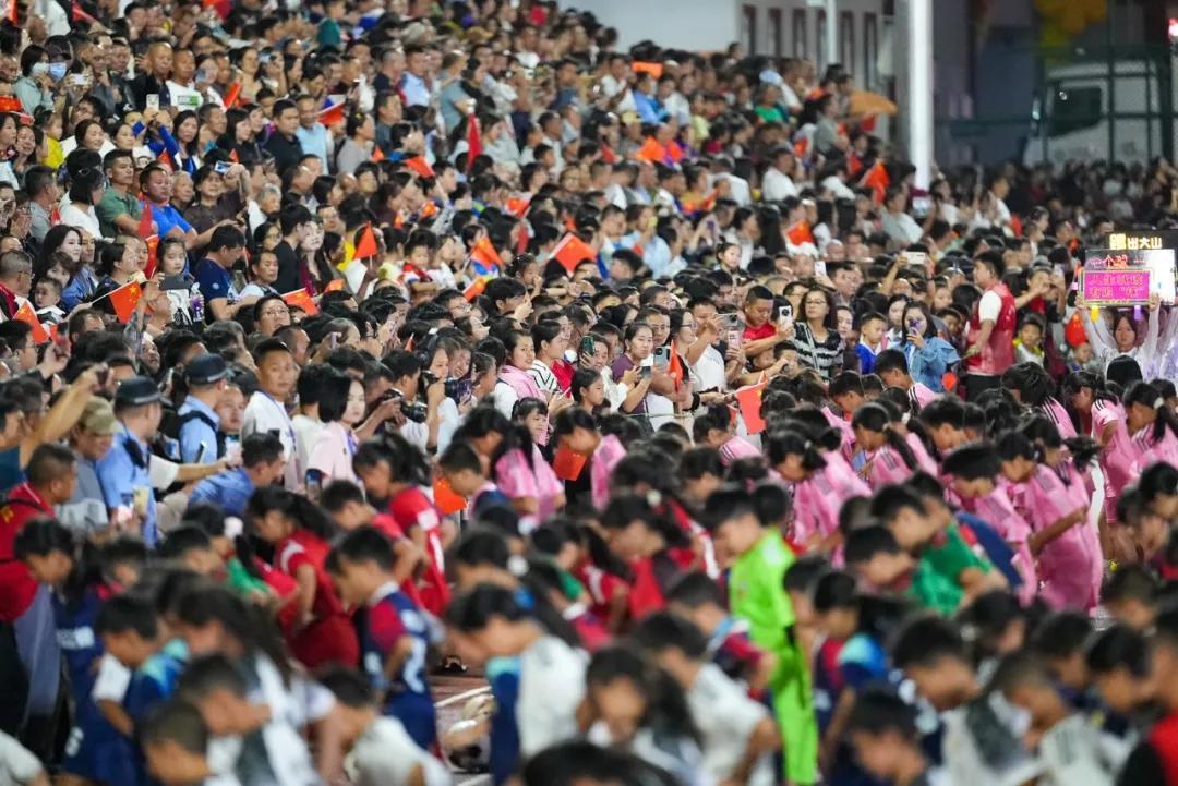 開幕式當晚,榕江村超球場湧進了1.5萬觀衆,兩個多小時的巡遊和90分鐘的比賽,讓現場觀衆不僅領略了貴州侗族、苗族、水族等民族的民族文化和舞蹈展演,更感受到了草根足球的激情。