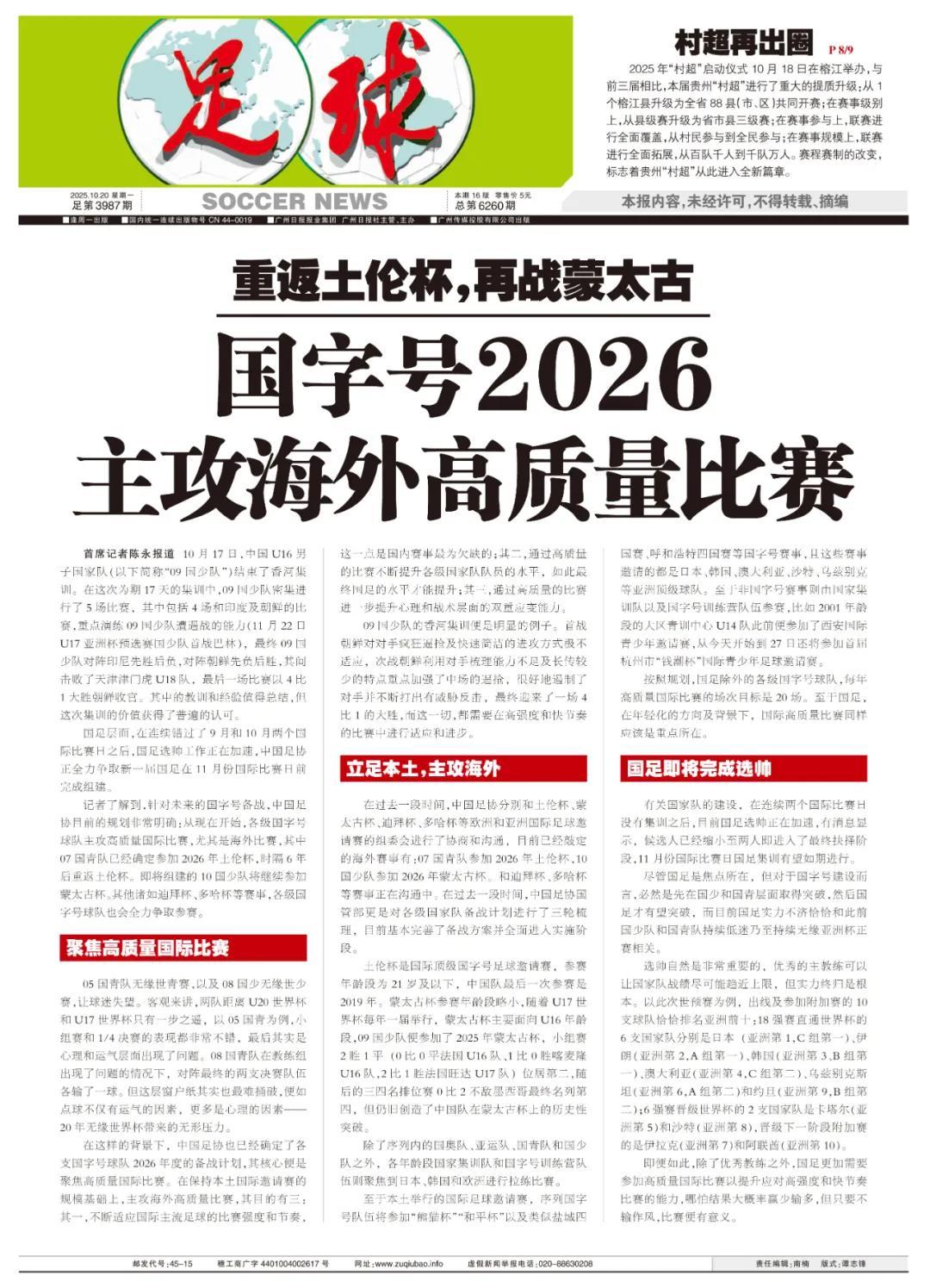 記者瞭解到,針對未來的國字號備戰,中國足協目前的規劃非常明確:從現在開始,各級國字號球隊主攻高質量國際比賽,尤其是海外比賽,其中07國青隊已經確定參加2026年土倫杯,時隔6年後重返土倫杯。即將組建的10國少隊將繼續參加蒙太古杯。其他諸如迪拜杯、多哈杯等賽事,各級國字號球隊也會全力爭取參賽。