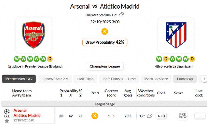 阿森納近期在與馬德里競技的2次交鋒中輸了1場