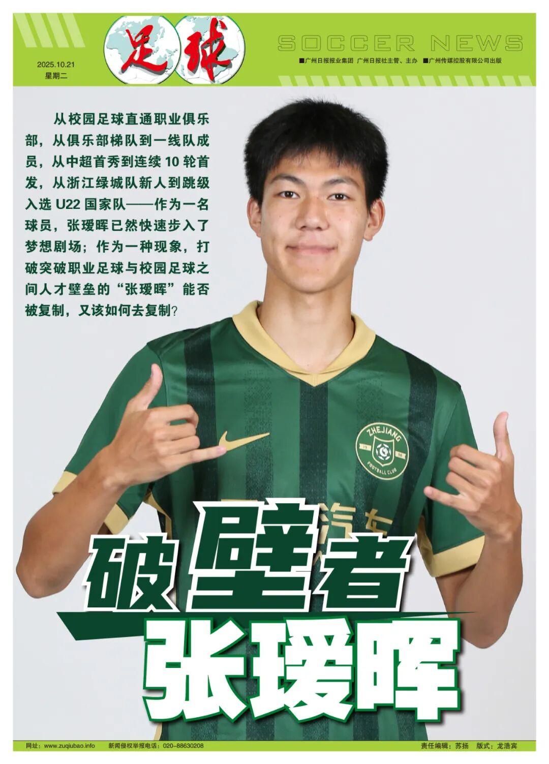 撰稿/左瑞 從校園足球直通職業俱樂部,從俱樂部梯隊到一線隊成員,從中超首秀到連續10輪首發,從浙江綠城隊新人到跳級入選U22國家隊——作爲一名球員,張璦暉已然快速步入了夢想劇場;作爲一種現象,打破突破職業足球與校園足球之間人才壁壘的“張璦暉”能否被複制,又該如何去複製?這比他本身更值得置身於體教融合浪潮中的每個中國足球人深思。