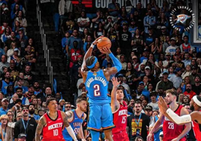 的確,亞歷山大過去1年多的時間給人最大的感受就是他的靠譜,他的穩定,你很少會在他身上看到情緒變化,他總是那麼的穩定,即便比賽中會遭遇一些起伏,但比賽結束時,他的數據貢獻十分穩定。此役,亞歷山大上半場只拿到5分,但第四節和兩個加時賽拿到24分,在雷霆隊多次需要有人站出來得分時,亞歷山大總是能夠挺身而出。火箭隊用盡一切辦法限制這位MVP的發揮,包括讓聯盟頂級外線防守者阿門·湯普森時刻盯防,但結果是亞歷山大堅持到了最後並製造制勝罰球,湯普森則在加時賽因體能透支抽筋下場。