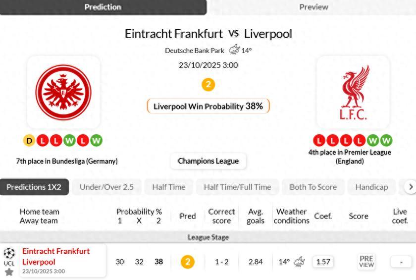 《海外情報》爲大家帶來週二歐冠賽場海外消息,海外情報今日帶來的場次是法蘭克福vs利物浦