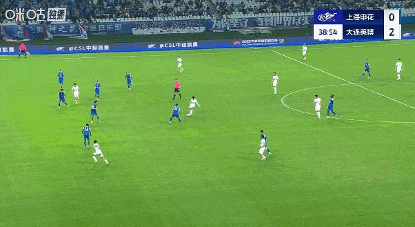 大連英博的戰術非常明確。後場囤積重兵密集防守,進攻主要通過快速反擊。這一招非常奏效。第25分鐘,呂焯毅遠射破門,大連英博率先打破場上僵局。第39分鐘,佩尼亞助攻,劉祝潤單刀破門,大連英博反客爲主,2比0領先。