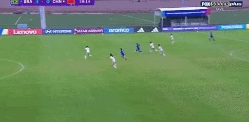 易邊再戰,比賽第52分鐘,埃夫林世界波,巴西隊2比0領先中國隊。