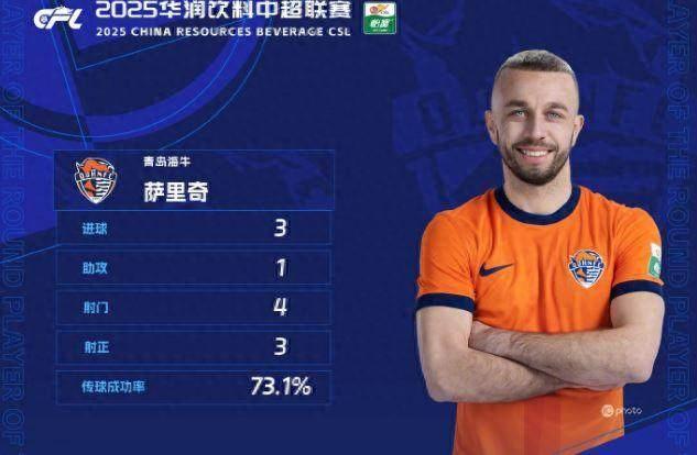 中超第28輪聯賽在上週末結束,聯賽官方日前評選出了本輪最佳球員,青島海牛外援薩里奇當選。
