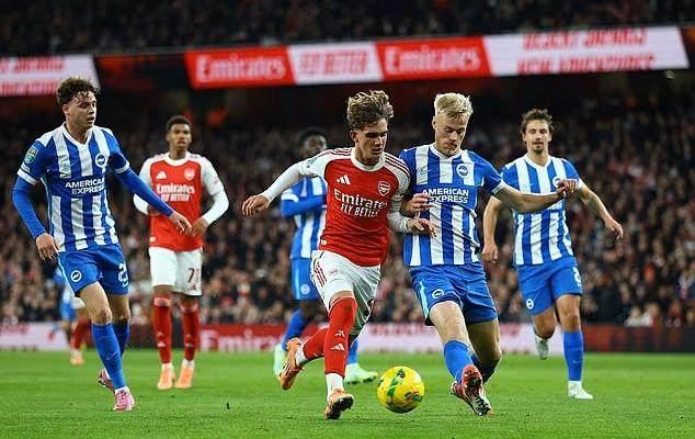 其實由24歲“老將”薩卡攻入的第二球,也充滿了青春元素,因爲先迫使布萊頓門將撲球脫手的,是單刀赴會的哈里曼-安努斯。這個陌生的名字是阿森納青訓的又一新產品,17歲踢中鋒,也可以踢邊鋒,身高不錯速度不錯,本賽季已經在U21預備隊踢了不少比賽,貢獻3球1助。