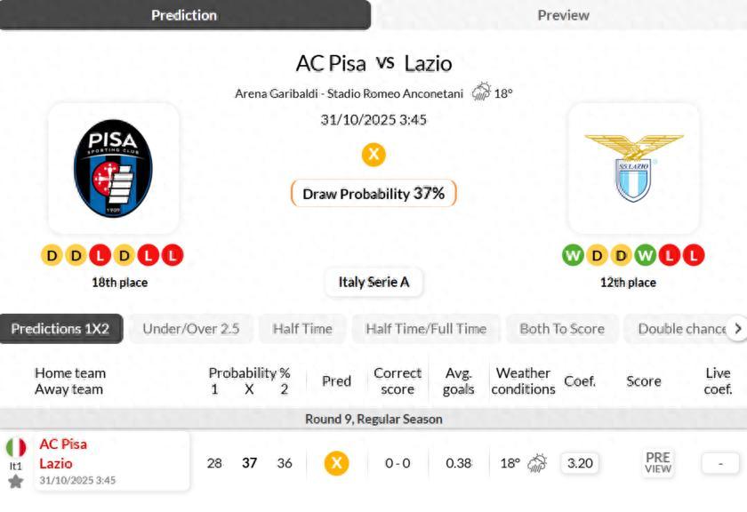- AC Pisa are reaching an average of 0.63 goals in Serie A games.