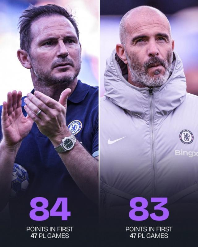 有待提高?馬雷斯卡執教切爾西前47場英超取83分,蘭帕德同期84分