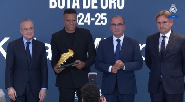 生涯首次獲獎!姆巴佩領取24-25賽季歐洲金靴,皇馬全隊到場支持