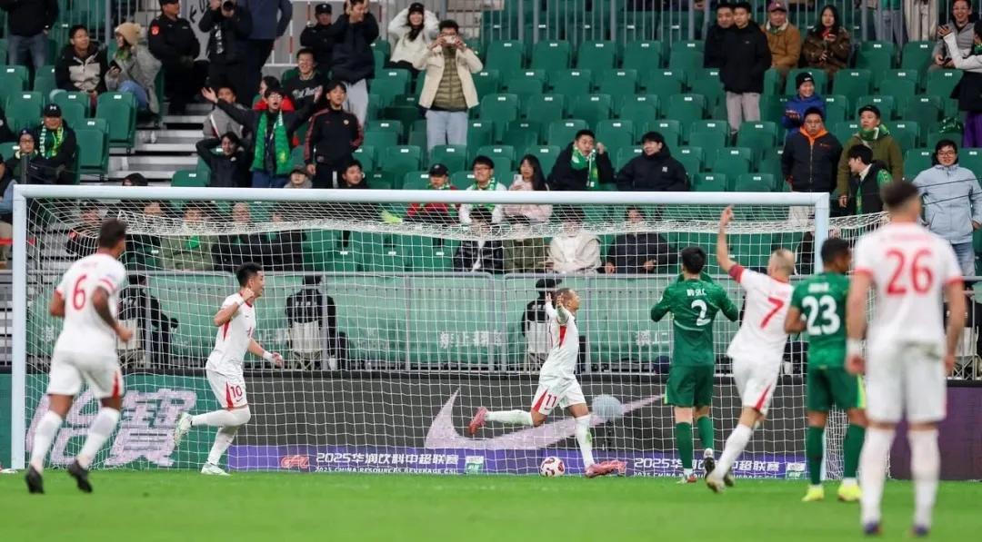 果然,面對舊主,塞爾吉尼奧絲毫沒有留情,在上半時就用一記頭球幫助國安隊率先進球,這個進球不僅是國安歷史各項賽事在客場的第600個進球,同時是本賽季球隊各項賽事的第81個進球,爲單賽季歷史最多,超過了2018賽季的80粒進球。