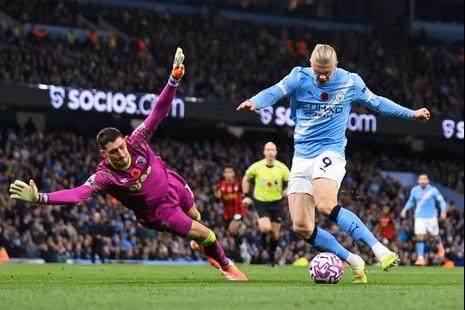 伯恩茅斯多次試圖在哈蘭德觸球前,讓一名中衛立刻上搶予以化解。接着問:如果曼城不是直接找哈蘭德,而是迂迴,通過第三甚至第四人把球打到空當,伯恩茅斯可以解藥?即使有,也未必管用。謝爾基兩次遊弋到無人緊逼的區域,球一上腳,立刻打向客隊中衛身後。哈蘭德兩次獲得極對口味的長距離直線單刀。謝爾基傳完,隔着30米開外,不等哈蘭德完成最後一擊,已經舉手開始歡呼。