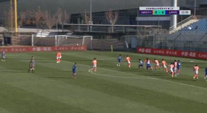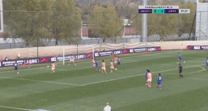 第56分鐘,吳曦挑傳,周俊臣精妙腳後跟做球,劉若釩迎球推射,上海申花4-0領先。