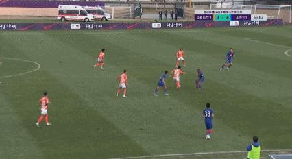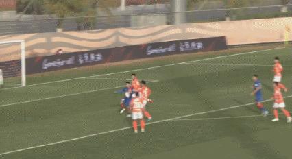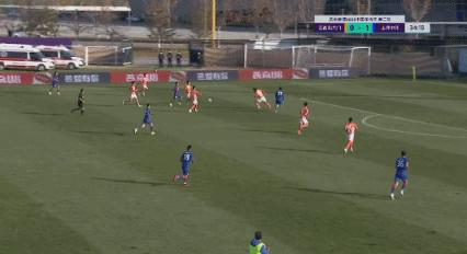 第37分鐘,王毅右路傳中,劉若釩搶點射門打高。