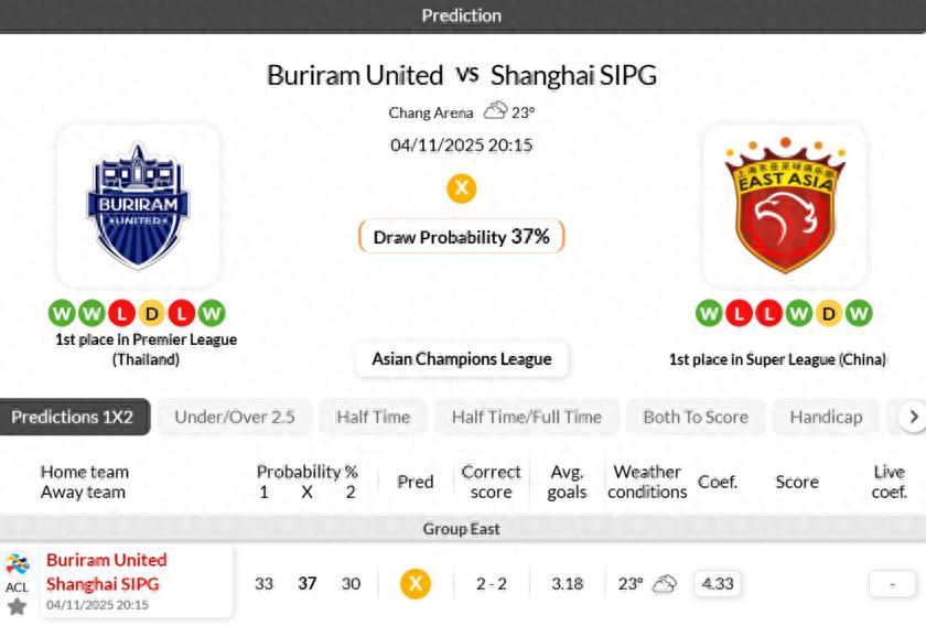 - Buriram United''s last 4 games in Asian Champions League have been high-scoring, with over 2.5 goals scored.