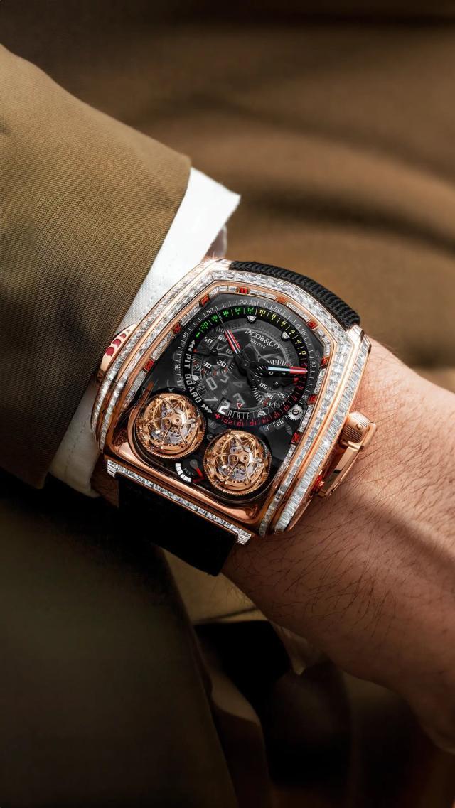 談到財富話題,摩根突然對C羅左腕閃閃發光的奢華腕錶產生興趣,這款由Jacob&Co與豪車品牌布加迪聯合推出的W16渦輪增壓引擎腕錶,售價高到130萬美元,限量發售126枚,摩根豔羨之情溢於言表:“說實話,我不窮了,但這個真是很貴。”他隨後詢問早已實現財富自由的C羅:“買過最貴的東西是啥?”