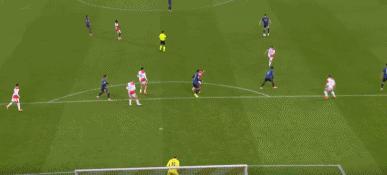 46’特羅薩爾左路傳中,無人防守的梅里諾輕鬆將球端入大門,阿森納2比0。