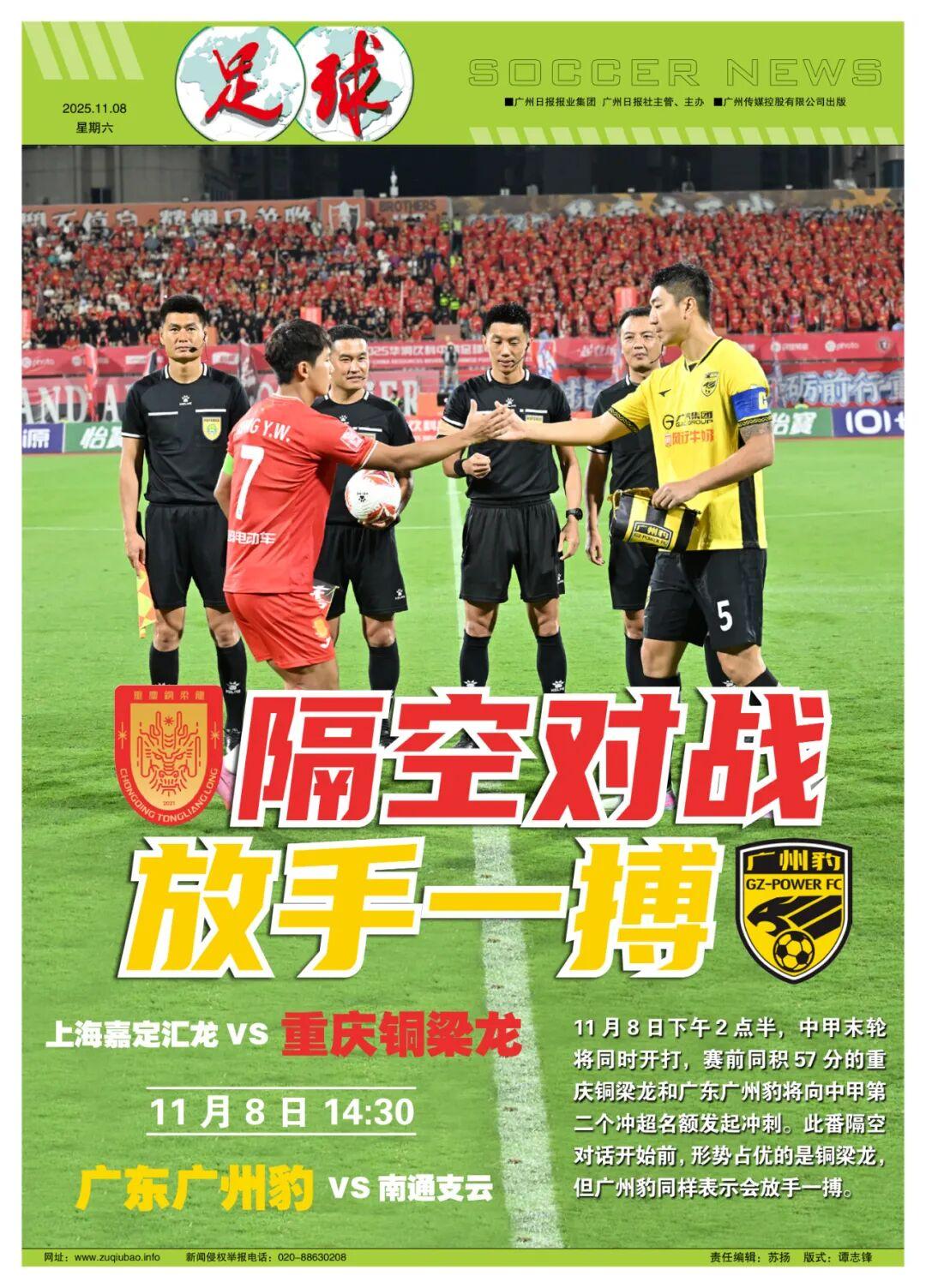 記者王偉、魯蜜報道 11月8日下午2點半,中甲第30輪即收官戰同時進行,同積57分的廣東廣州豹將和重慶銅梁龍爲第二個衝超名額隔空對陣,形勢佔優的是銅梁龍,但廣州豹上下表示會放手一搏。