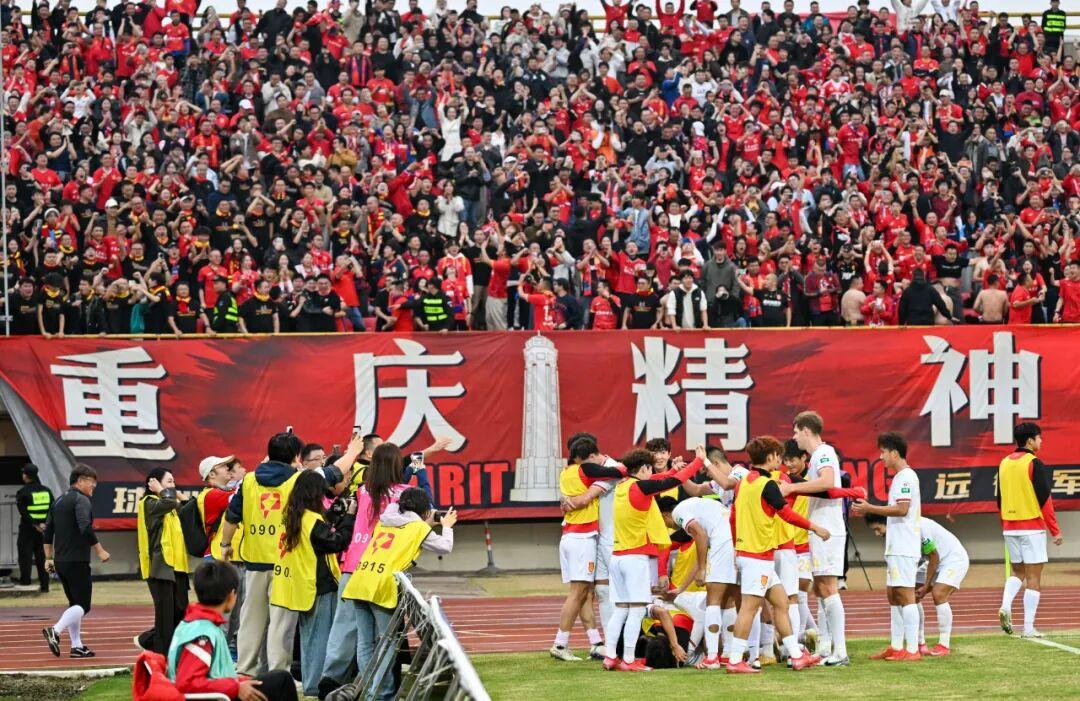 11月8日,上海嘉定體育中心,主隊在賽後爲衝超的客隊播放起了慶祝音樂,這是十分少見的。重慶足球在中國足球的版圖裏,20多年來一直赫赫有名。三年前,兩江競技解散前夕,全國有無數媒體呼籲“重慶不能沒有足球”,這是重慶足球危難之際,各方伸出的援手,只可惜,結局並沒有改變。