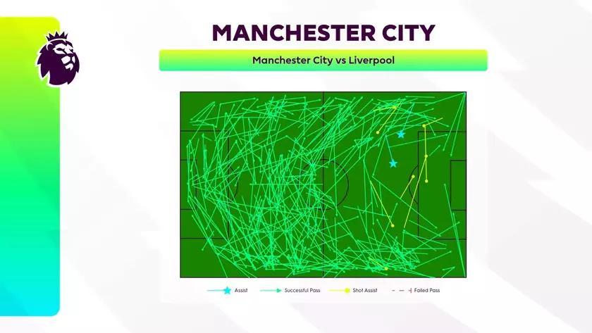 即使在被認爲處於下風的控球環節,曼城的傳球成功率仍達到84%,僅比利物浦低兩個百分點,證明球隊在放棄無謂控球的同時,依然保持着傳球質量。