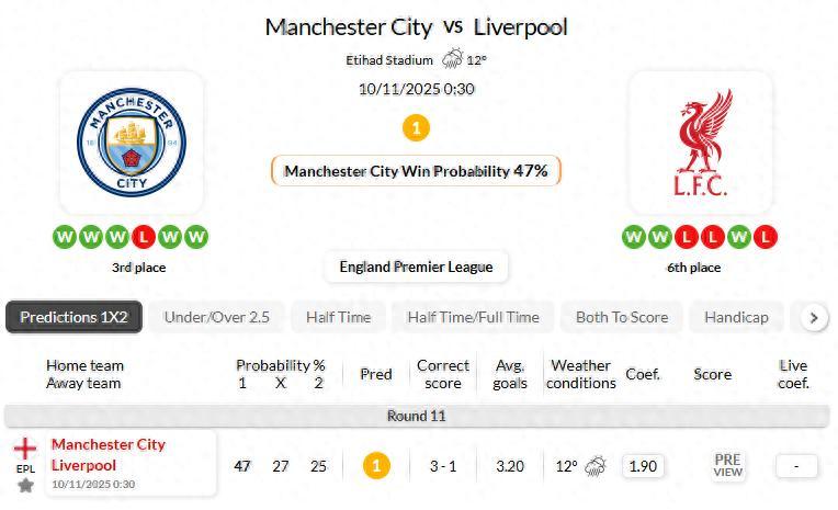 曼徹斯特城近3場比賽均打出超過2.5球的高比分