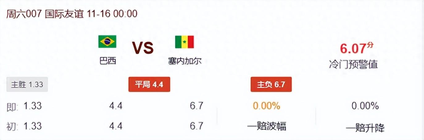 數據層面對巴西給出了主勝1.33的賠率,表達了對傳統強隊實力的認可。巴西坐擁主場之利且陣容價值明顯高於對手,進攻端也具備強大火力。然而塞內加爾近期狀態明顯優於巴西,保持連續10場不敗的強勢,且歷史交鋒中從未輸給過巴西。考慮到巴西防守端存在的隱患以及塞內加爾犀利的反擊能力,本場比賽存在不小的冷門空間。綜合來看,巴西固然實力佔優且擁有主場之利,但塞內加爾有望憑藉更佳的近期狀態和歷史戰績心理優勢在客場製造冷門,數據對巴西的支持力度看似合理,實則忽視了其防守隱患與塞內加爾的不敗勢頭。