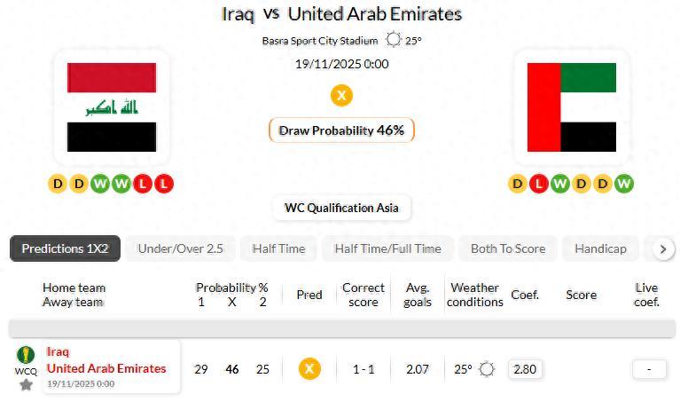 Iraq have seen under 2.5 goals in their last 5 games in WC Qualification Asia