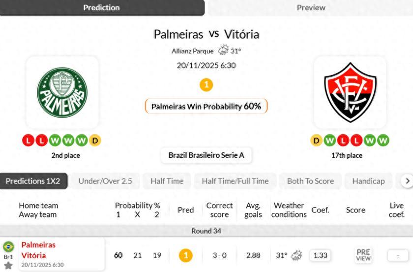 《海外情報》爲大家帶來週三巴甲賽場海外消息,海外情報今日帶來的場次是帕爾梅拉斯vs維多利亞