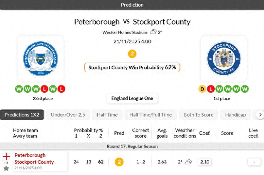 斯托克波特郡近6次對陣彼得伯勒聯僅取1勝,交手紀錄處於下風。