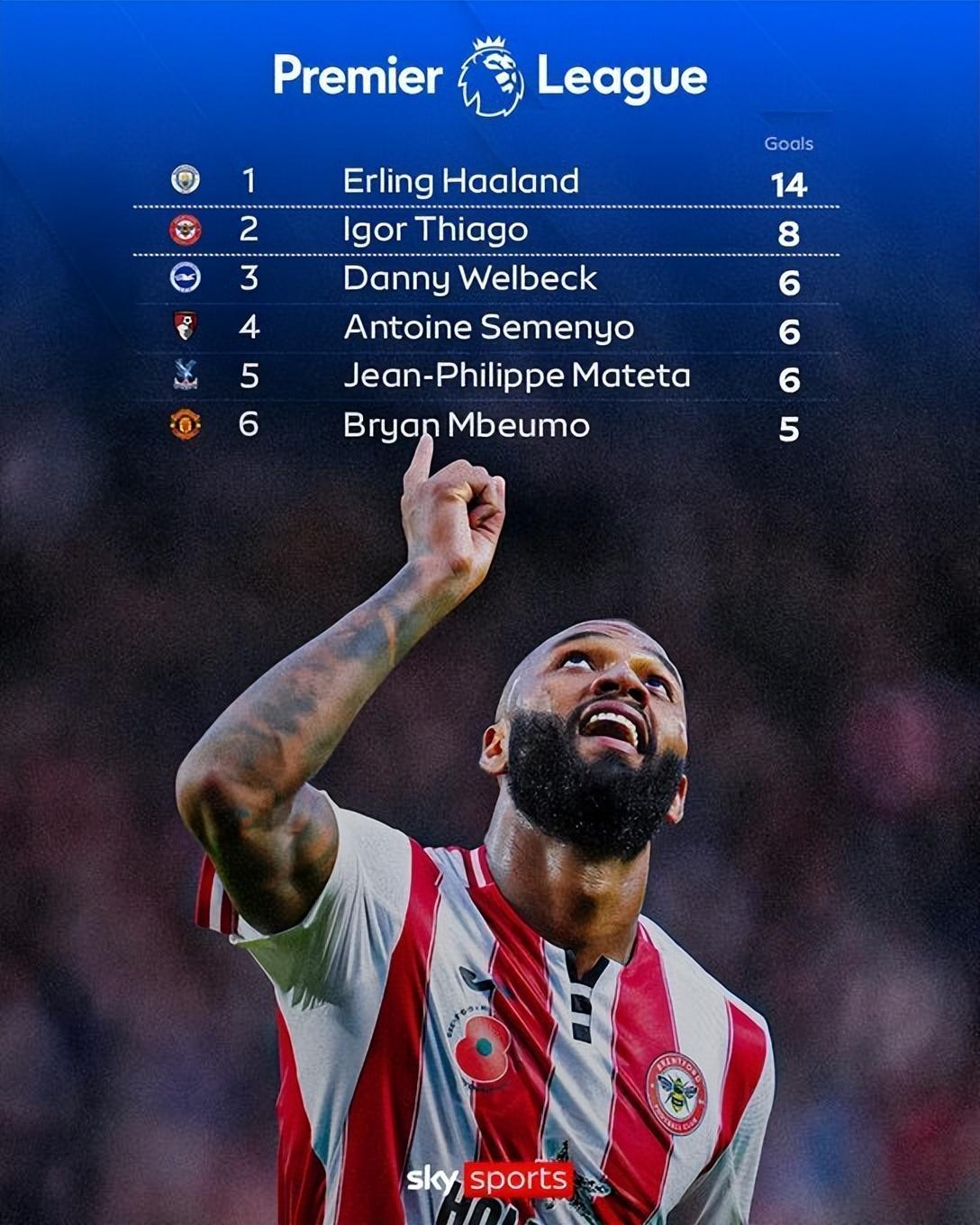 從菲利普霍夫曼到莫派、沃特金斯,從本拉赫馬到伊萬託尼、再到姆貝烏莫,如今,輪到了伊戈爾蒂亞戈,扛起了布倫特福德的大旗。