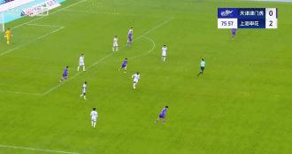 第77分鐘,申花後場馬納法長傳,路易斯接球后到門前推射入網,不過邊裁舉旗示意越位,經過長時間的視頻查看之後,確認進球有效,津門虎0比3申花。