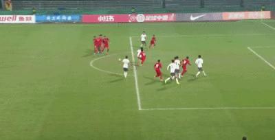 第6分鐘,中國隊獲得角球,萬項開出戰術角球,鄺兆鐳傳中打在防守隊員身上彈出,帥惟浩頭球破門,U16國足1比0領先巴林U16。