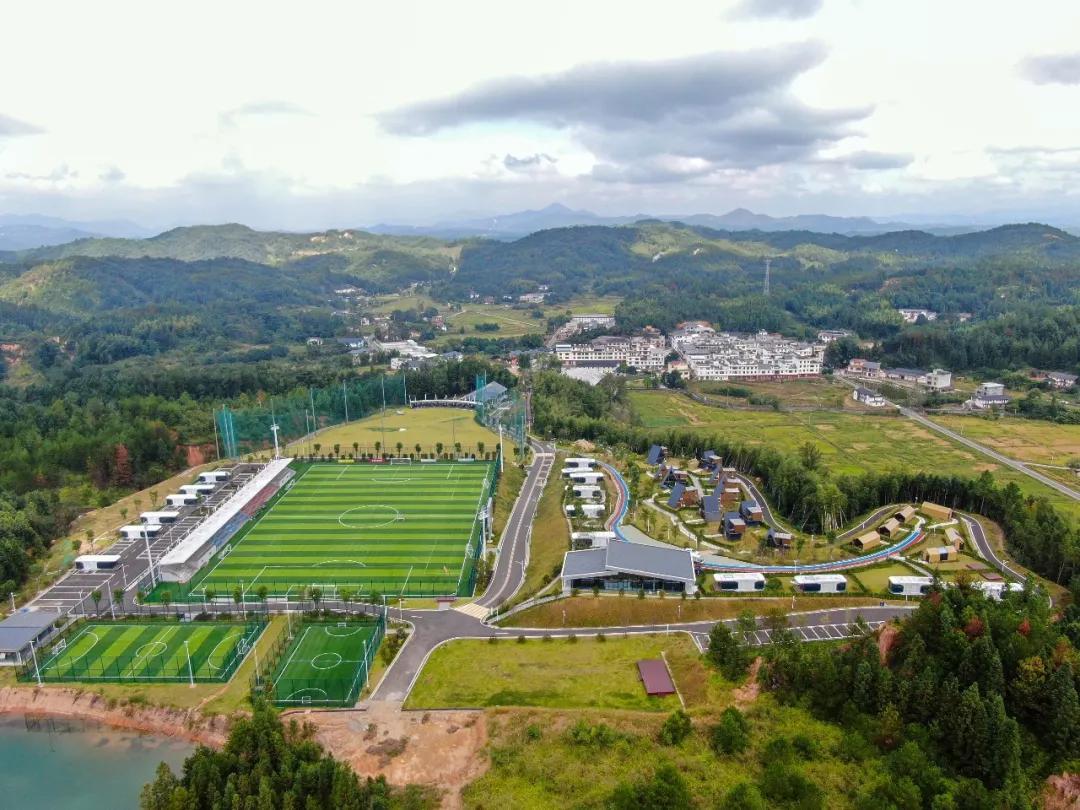 定南(國家)青少年足球訓練中心並不是短期內建成的,其建設始於2017年,歷經近九年的建設:首期投資1.85億建成主體育場及9塊場地;二期和華京體育(梅州五華橫陂足球小鎮運營方)合作投資4.5億;如今則以定南(國家)青少年足球訓練中心爲核心樞紐,構建更多的足球小鎮——嶺北鎮南豐村、巋美山足球小鎮、鵝公鎮足球小鎮等等,並統籌運行機制,形成網絡化、全縣規模的“足球小鎮”。
