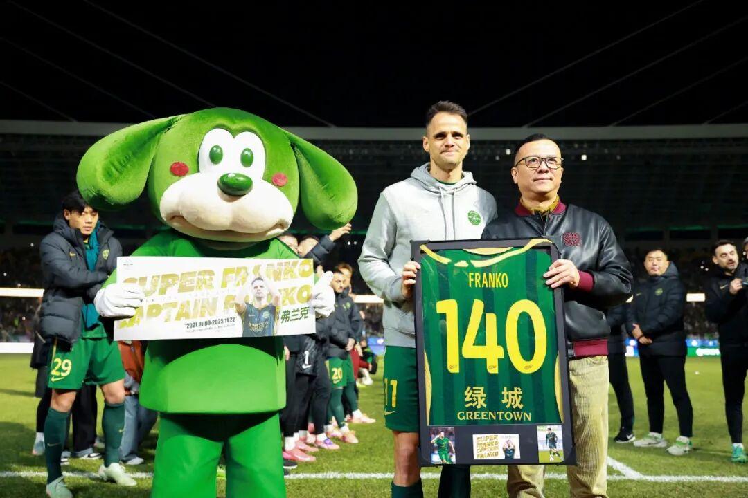 弗蘭克的告別戰近乎完美,出場68分鐘三次破門,儘管有兩次被VAR判定無效,但依舊有一個漂亮的頭球留在了這裏。賽後,站在場地中央巨大的11號球衣前,弗蘭克向全場超過2.8萬名觀衆表示感謝,幾度淚下,最後,他用中文領唱《月亮代表我的心》,全場隨唱。