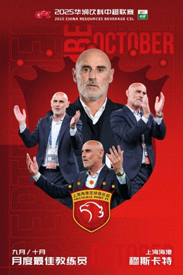 體壇週報全媒體原創11月26日,中超聯賽官方公佈了9月、10月最佳教練人選,上海海港主帥穆斯卡特當選。官方公告寫道:穆斯卡特率領上海海港在第23-28輪的比賽中,拿到了關鍵的4場勝利,球隊也重回積分榜榜首位置。在9/10月最佳教練的評選中,穆斯卡特在媒體評委會投票環節中獲得了10張第一順位選票,最終以81分當選爲中超9/10月最佳教練。注:因調賽原因,9/10月評選範圍爲第23、24、25、26、27、28輪,共計6輪,參選球員數據以上述6輪比賽數據爲準。