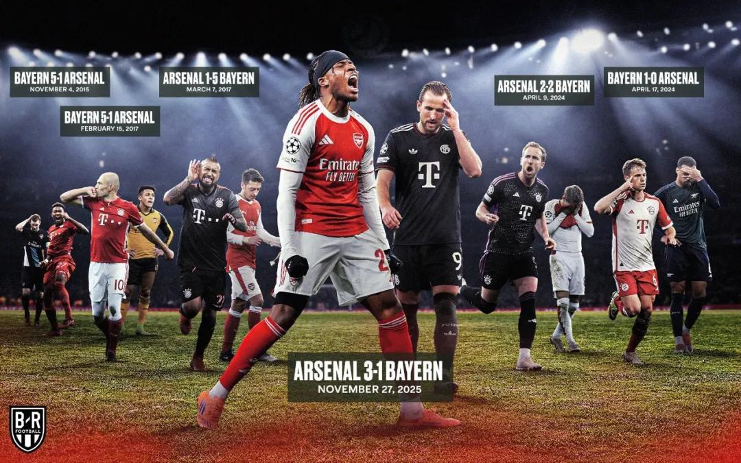 上週日北倫敦德比4比1輕鬆擊敗熱刺的阿森納,終結拜仁賽季18場不敗登頂歐冠纔是更高目標。畢竟拜仁是近年阿森納在歐冠最想擊敗的對手,2016/17賽季1/8決賽兩回合兩個1比5恥辱性被淘汰。連帶2015年11月歐冠小組賽,10年來阿森納3次單場被拜仁5次破門。