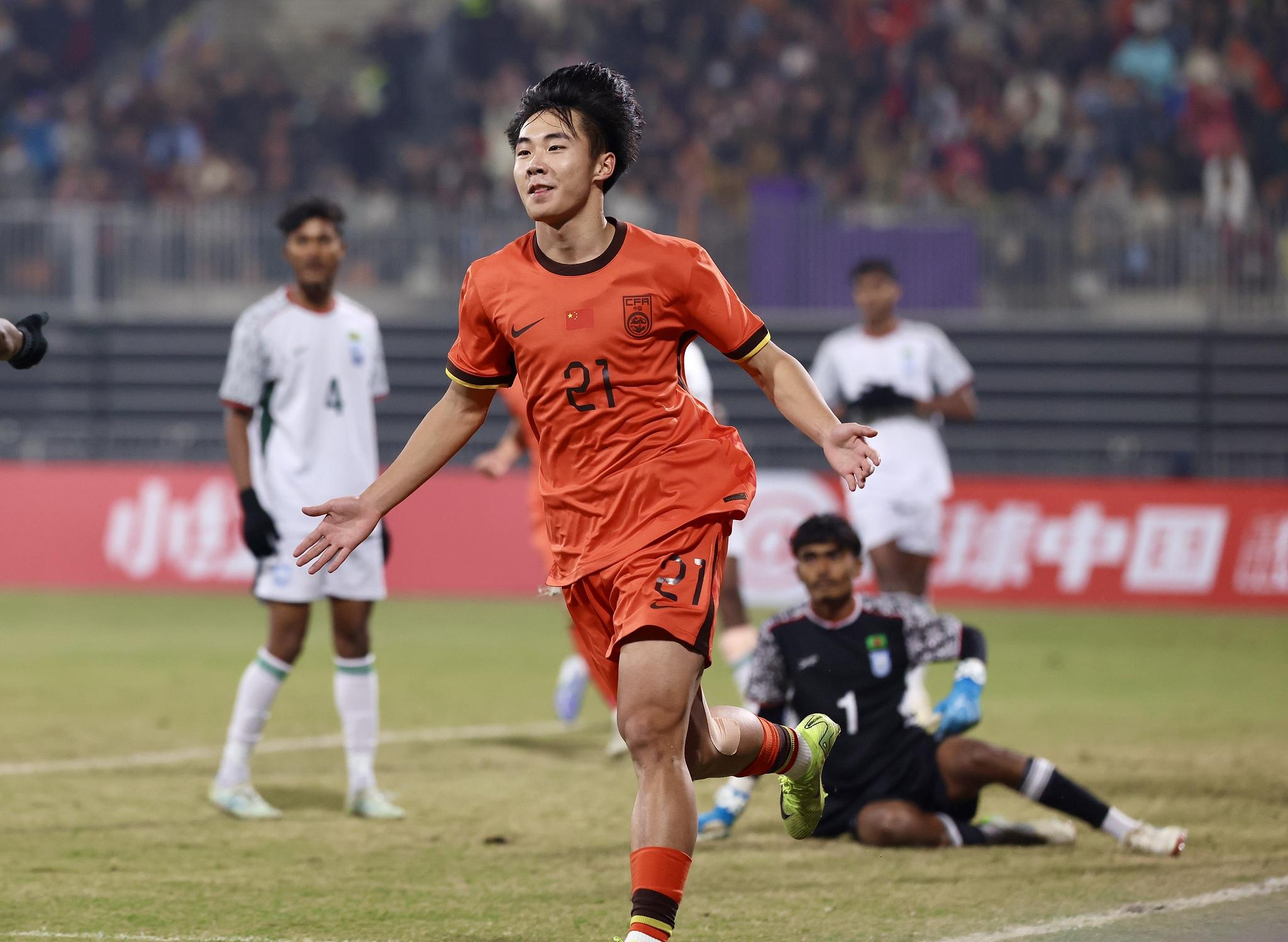 在這場比賽的上半場,09國少堅持地面傳接,對手小快靈的配置在開局一度讓國少隊雖有控制權但很難通過傳接撕破對手防線。但在持續的壓力下,孟加拉國防線還是出現鬆動,國少隊在第8分鐘,由鄺兆鐳傳中製造威脅,帥惟浩機敏前插搶在對手門將得球前捅射破門。儘管隨後孟加拉國球員展現出了小組第二的一定實力,並且迫使秦子牛做出了一次精彩撲救,但隨着比賽的推進,國少的持續施壓還是讓對手繼續犯錯:第38分鐘,孟加拉國的後衛失誤被斷,帥惟浩晃過門將後梅開二度,09國少輕鬆取得了2比0的領先優勢。