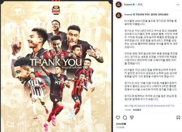 首爾FC官方宣佈,32歲的攻擊手林加德將在賽季結束後離開球隊。官方公告:首爾FC宣佈,2025賽季結束後與林加德合同結束,正式分道揚鑣。過去兩個賽季裏,林加德作爲K聯賽歷史上商業價值頂級的球員,不僅助力首爾提升了球隊戰力,還極大地提升了俱樂部的品牌價值與行業地位,展現出了獨一無二的影響力。此外,他的作用還超越了球隊範疇,成爲了整個K聯賽的標誌性球員,攜手聯賽共同書寫了嶄新的歷史。俱樂部曾依據續約條款推進續約事宜,但林加德認爲當下是開啓新挑戰的恰當時機,並表達了奔赴下一段職業生涯的決心。過去兩年間林加德爲球隊傾盡全力,肩負起隊長重任,他所具備的標杆意義與付出的努力,俱樂部致以深切的謝意與敬意,最終決定尊重並接受他的選擇。12月10日週三於首爾世界盃體育場打響的亞冠精英聯賽小組賽第6輪,林加德將以首爾FC球員的身份,在對陣墨爾本的比賽中,完成自己的告別之戰。期待廣大球迷能以高度的關注與熱情的應援,陪伴林加德踢完這最後一場比賽。現年32歲的林加德在2023年夏天離開諾丁漢森林,2024年初以自由球員的身份加盟首爾FC俱樂部,效力球隊近兩年,林加德代表首爾已經出戰了66場,貢獻18球10助攻。林加德出自曼聯青訓,職業生涯租借效力過萊斯特城、伯明翰、布萊頓、德比郡、西漢姆聯等球隊。