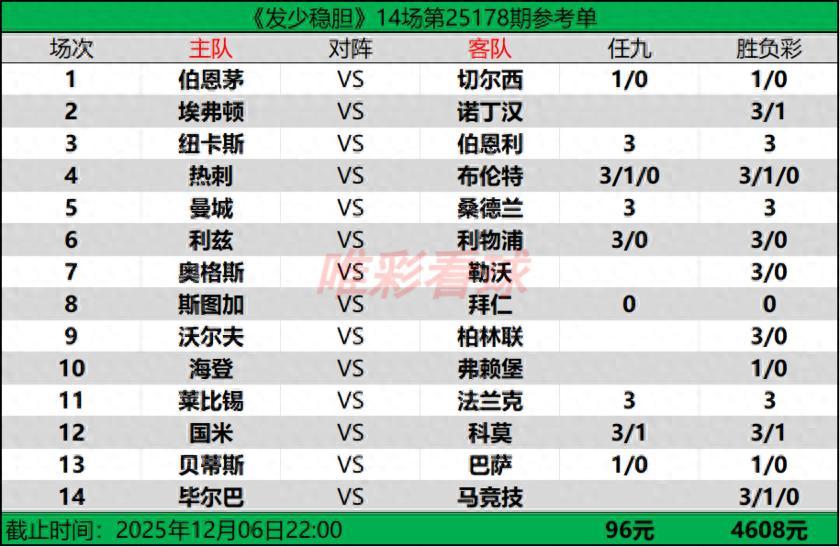 發少穩膽14場勝負彩25180期,發少今日繼續奉上本期勝負彩遊戲焦點賽事賽果精心預測,希望能夠對廣大彩民有所幫助,歡迎大家長期關注支持!