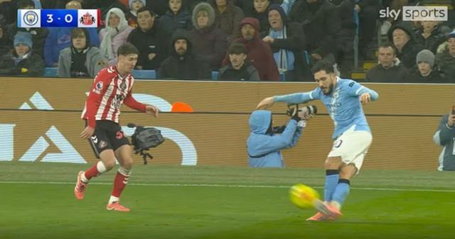 曼城迎戰賽季兩大黑馬之一桑德蘭,又見老劇本出籠。魯本·迪亞斯在禁區開外5米拿球,誰也沒覺得那是他發飆怒射的前兆,至少瓜不大喜歡中衛這麼莽撞。就像7年前的隊長孔帕尼,帶着帶着按捺不住,頂着隊友呼喊“隊長隊長,別射,有我!”咣噹一腳,皮球直躥死角。迪亞斯十足老隊長附體,一記88毫米平射,皮球在孔帕尼當年掛網的位置進了!