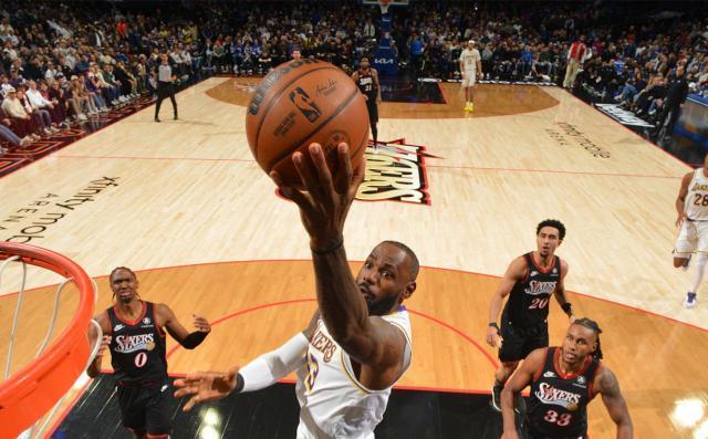 76人依靠格萊姆斯的三分球和恩比德的跳投,將比分追到105平。關鍵時刻還是詹姆斯站出來,他接到東契奇助攻,又在45度角外線出手三分命中。76人的進攻未果,湖人隨後一攻交到詹姆斯手中。他持球突破,後撤步中投得手。比賽時間還剩27.3秒,湖人110比105領先5分,76人叫了暫停。