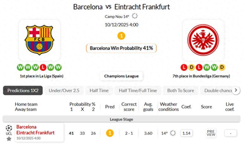 巴塞羅那VS法蘭克福