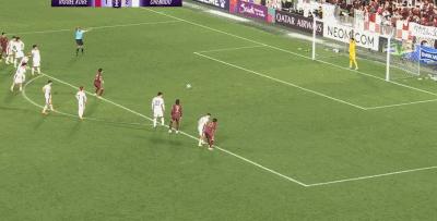 第65分鐘,韋世豪左路得球,將球吊入禁區,混戰中沒人碰到皮球,球砸在右側橫樑上彈出。