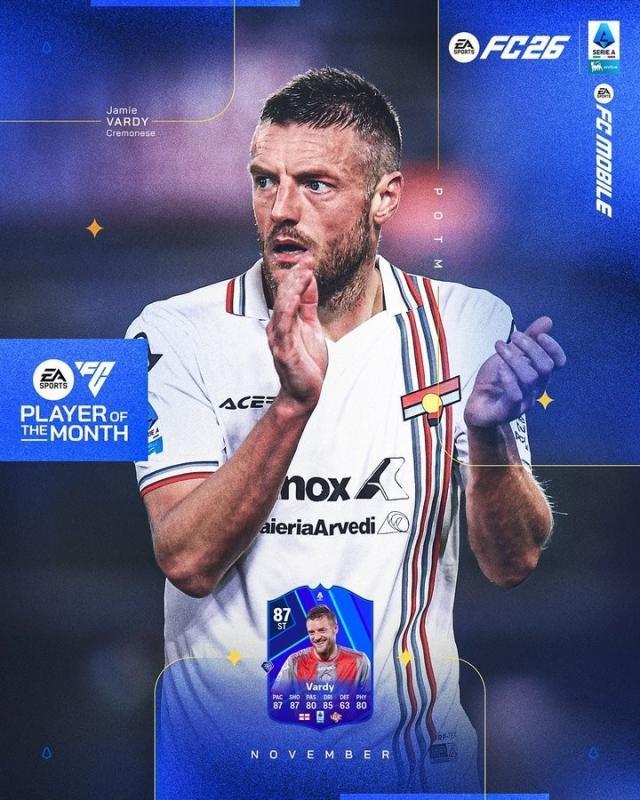 意甲官方宣佈,瓦爾迪當選11月(評選週期爲第10-13輪)聯賽最佳球員。38歲前鋒瓦爾迪目前效力克雷莫內塞,在11月評選週期打入3球,本賽季出戰10場意甲打入4球,身價100萬歐。