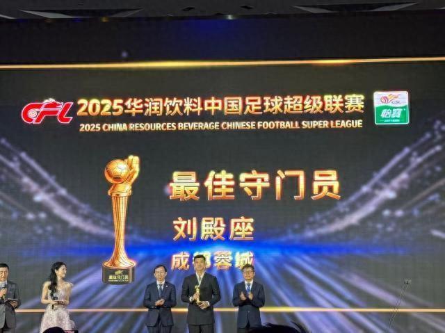 12月12日晚,2025賽季中國足球職業聯賽頒獎會隆重舉行,各年度獎項評選結果相繼揭曉。劉殿座獲中超最佳守門員,李海新獲中超金哨獎。